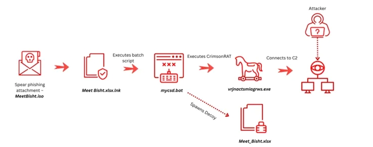 Secondo i ricercatori TRU, la campagna utilizza tecniche di social engineering basate su contenuti tematici legati al mondo startup, distribuiti tramite file ISO e collegamenti LNK malevoli, per veicolare Crimson RAT, un malware di accesso remoto già noto e ampiamente utilizzato dal gruppo in precedenti operazioni di spionaggio. Il materiale esca analizzato fa riferimento a contenuti reali e a figure effettivamente presenti nell’ecosistema tecnologico indiano, con l’obiettivo di aumentare la credibilità dell’attacco e favorire l’esecuzione del payload da parte delle vittime.