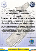 Il 3 marzo l’Accademia del Leviatano, insieme alla Fondazione della Cassa di Risparmio di Civitavecchia-CARICIV- presenta il 2° incontro pubblico “Le balene del Mar Tirreno – monitoraggio cetacei tra Civitavecchia e la Sardegna”.