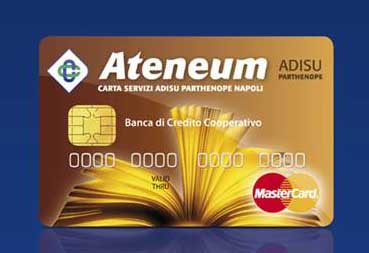 E’ stata presentata lo scorso 25 novembre, a Napoli, la nuova Carta Servizi dell’ADISU Parthenope presso l’Aula Magna dell’Università Parthenope. La carta denominata “Ateneum” è un prodotto della BCC di Napoli e destinato ai giovani studenti universitari. La carta funge sia da Carta Servizi sia da Carta Prepagata facendo parte del circuito Mastercard. Per gli studenti universitari, con questa carta, si potrà usufruire di un notevole numero di benefit, sconti e servizi bancari. La card, targata Napoli, è in co-branding con il circuito europeo facente capo all’ ”Associazione Carta Giovani” garantendo così ai titolari l’accesso a un numero enorme di esercizi convenzionati ACG in tutta Europa. Il numero supererebbe i oltre 100.000.