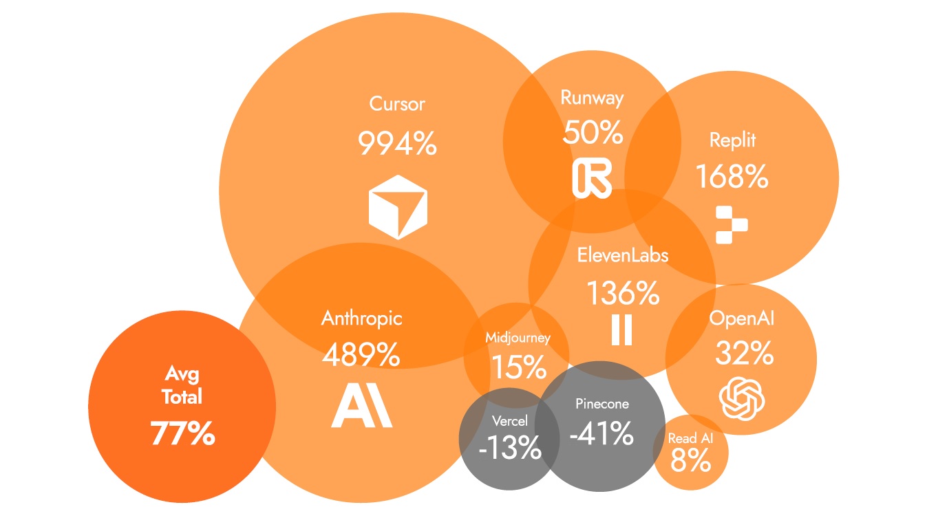 Accanto al ritorno delle trasferte, però, la trasformazione più significativa riguarda l’intelligenza artificiale. Nel 2025 la spesa media per gli strumenti di AI è aumentata del 77%, mentre quella complessiva per i principali tool è cresciuta del 175%. Non si tratta più di test o di sperimentazioni isolate: l’AI sta entrando nei processi operativi delle aziende. Ancora più interessante è il tipo di strumenti che stanno guadagnando terreno. Crescono rapidamente piattaforme molto specializzate (per lo sviluppo software, la generazione di contenuti o l’automazione di attività operative), mentre i modelli più generalisti continuano a diffondersi, ma con ritmi più lenti. È il segno di un mercato che sta passando dalla curiosità alla selezione di soluzioni utili a casi d’uso concreti.