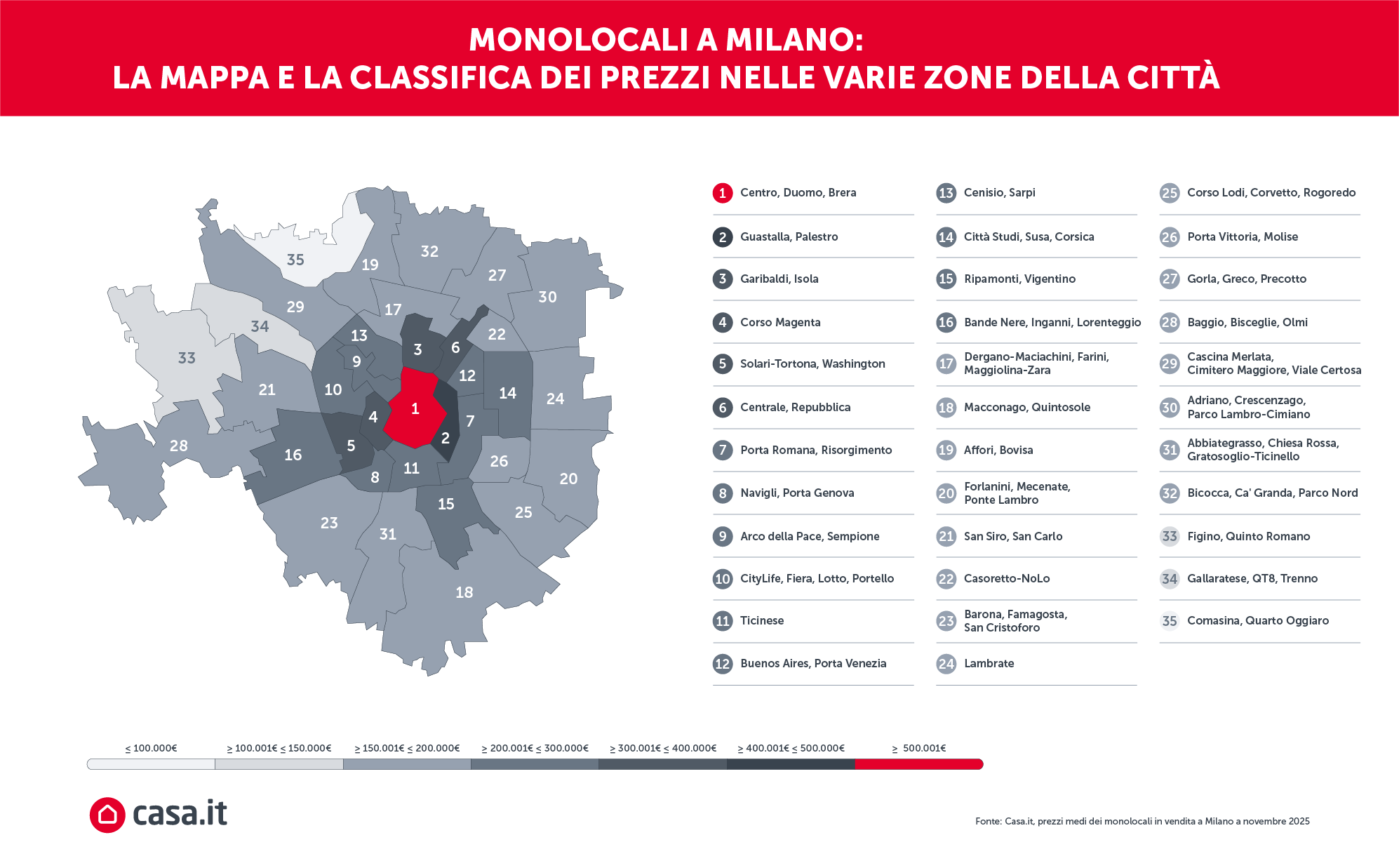 Milano – Oltre ad essere il capoluogo di provincia della Lombardia più caro dove comprare un trilocale e un bilocale, Milano è anche quello più costoso dove comprare un monolocale con una richiesta media per questo tipo di appartamento di 235.042€, secondo l’analisi di Casa.it dei prezzi dei monolocali in vendita a novembre 2025.