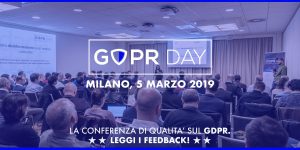 Appuntamento il 5 marzo a Milano con GDPR Day 2019. Unico incontro nazionale, fortemente voluto dalla Community, per rispondere alla continua richiesta di formazione di qualità e approfondimenti sul GDPR.